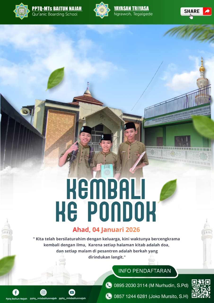 Setelah menjalani liburan semester bersama keluarga, para santri kembali ke pondok dengan semangat dan wajah penuh antusias. Suasana pondok kembali…